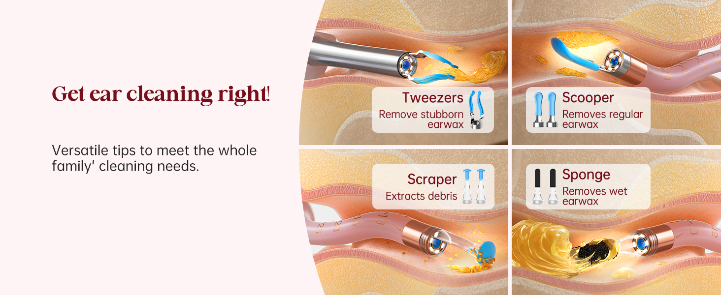 bebird可视挖耳勺蜂鸟蛇形可弯曲带镊子耳勺掏耳神器bebird3Plus粉色